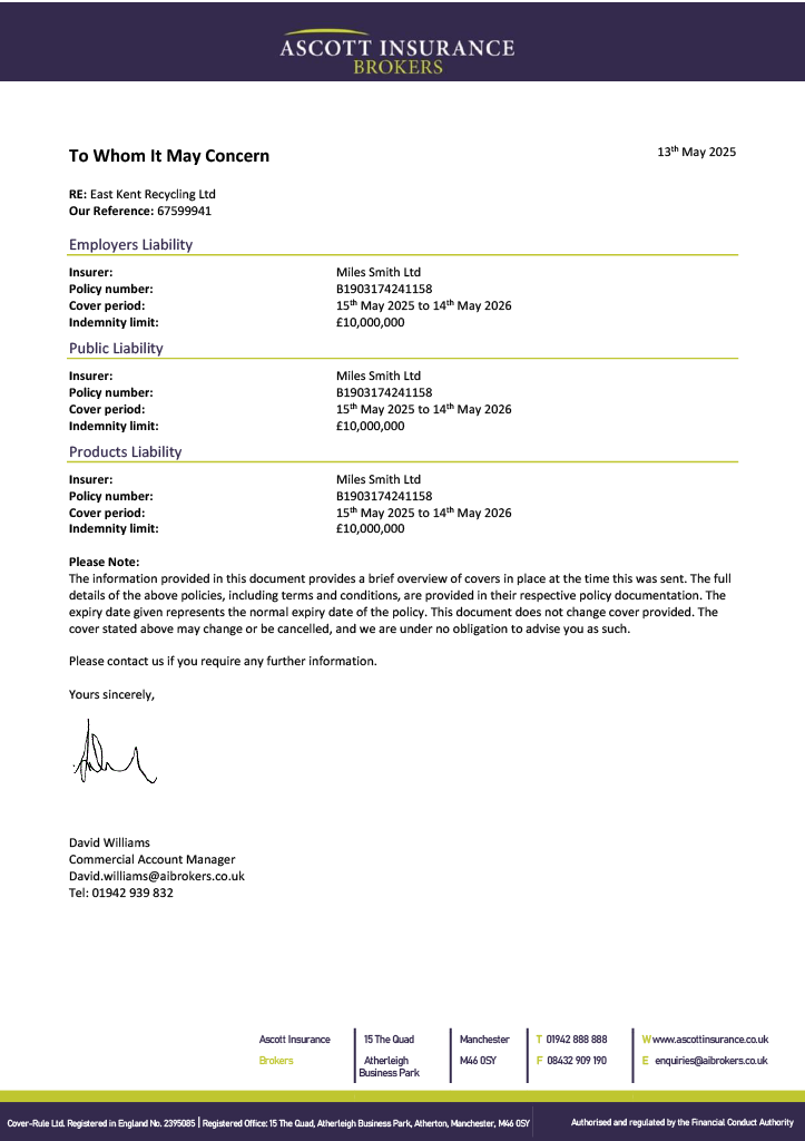 We practice full compliance with a growing selection of accreditation schemes to support our customer service commitment. Please find documents available to download below: